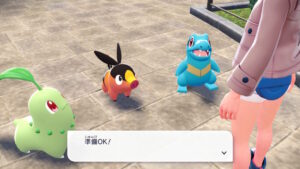 選択した後、「ポカブ」「ワニノコ」「チコリータ」の3匹から1匹選ぶ事が出来る。
