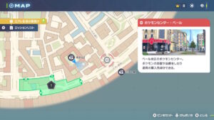 タウニーとポケモンセンターに行こう。外でSwitchの+ボタンを押すとマップを見る事が出来ます。