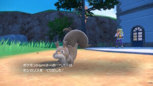 灯台でペバーとポケモンバトルする。手持ちホシガリスLv5一体