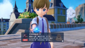 学校(テーブルシティ)内でスター団のしたっぱと2回バトルをする。勝利後ネモからテラスタルオーブが貰える。