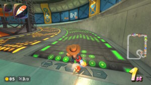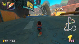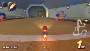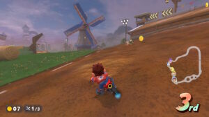 最初は迷いやすいコースの仕組み。右のミニマップを見ながらカートを操作していこう。