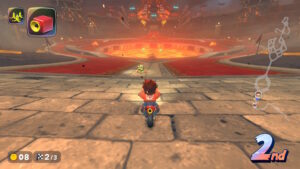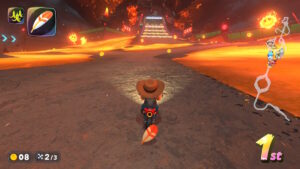 マグマに落ちるとコースアウト。岩場でジャンプアクションを発動させながらダッシュボードを目指そう