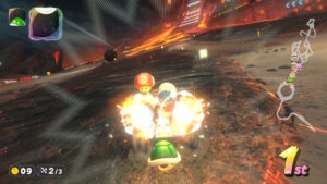 固まった溶岩の道はスーパーキノコを使うとショートカットが可能。