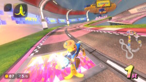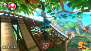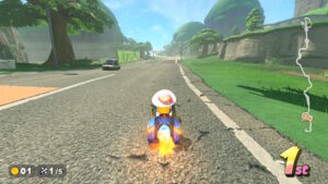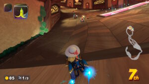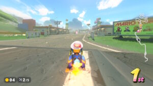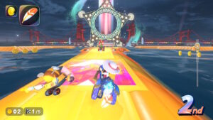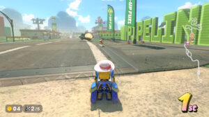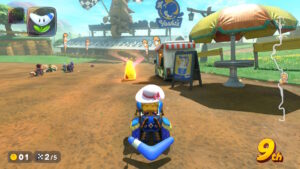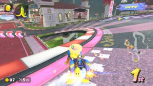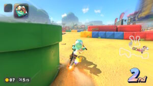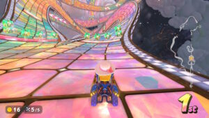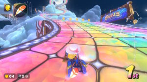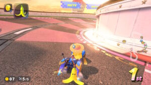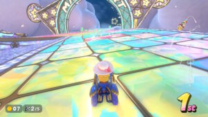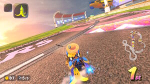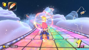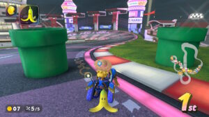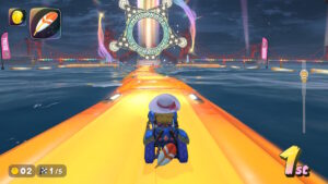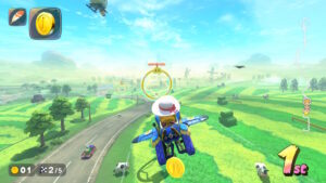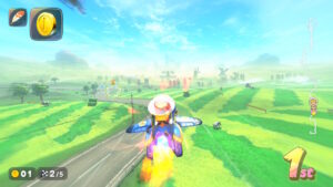 空中にある星のリングは入るとカートが一定時間加速状態になる。更に電柱にある電線の上に乗るとターボが発生する。