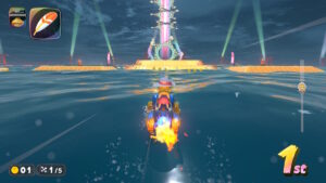 海上でジャンプアクションを決めた後はオレンジ色のコーナーでダッシュボードを狙おう。