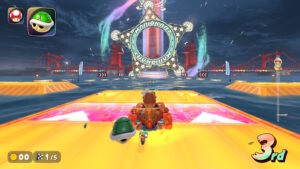 一つのミスや「赤こうら等のアイテムによる攻撃」を受けると即復帰不能になる場面もあり、安定した走行が何より重要です。