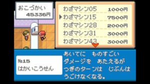 「はかいこうせん」は2Fの7500円で売られているわざマシン。