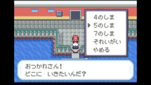 クチバシティの船乗りにトライパスを見せると「1のしま」~「3のしま」まで行く事が出来る。