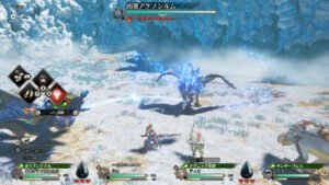 弱凶撃:アイスドリル(厄石破壊後使用)(味方単体に氷属性の攻撃)(自身に竜気防御力ダウン【小】付与)