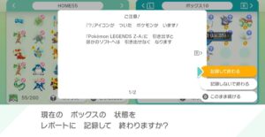 ここで「記録しない」を選んでしまうと、ポケモンの移動が正常に反映されないため注意が必要です。