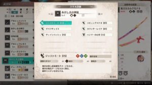 報復の構え【巧】/桜花気刃斬り / 気刃解放斬り/気刃大回転斬り【巧】/抜刀攻撃/反撃強化【大】